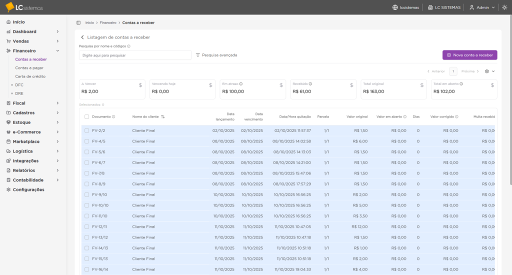 - Emissão de recibos, carnês, duplicatas e promissórias;