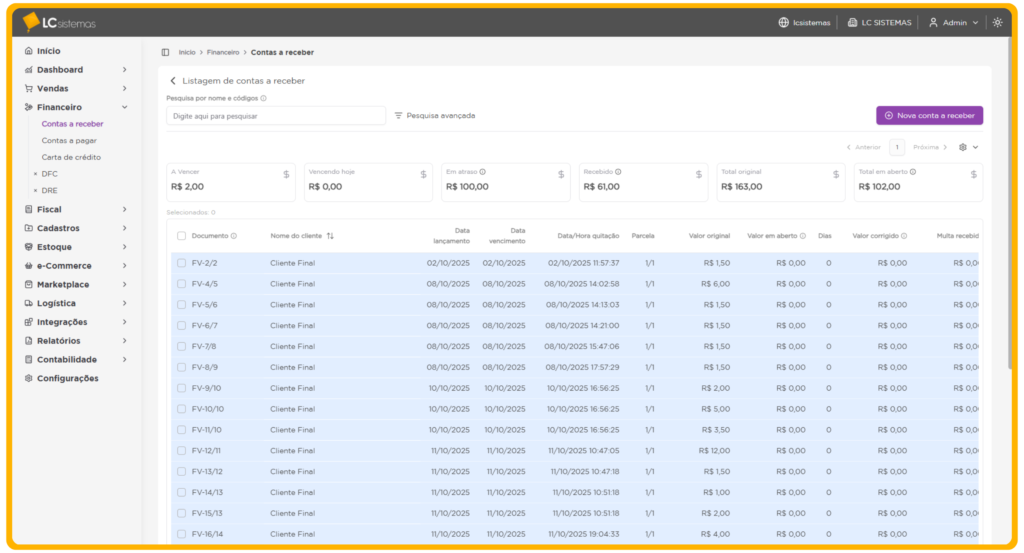 - Emissão de recibos, carnês, duplicatas e promissórias;